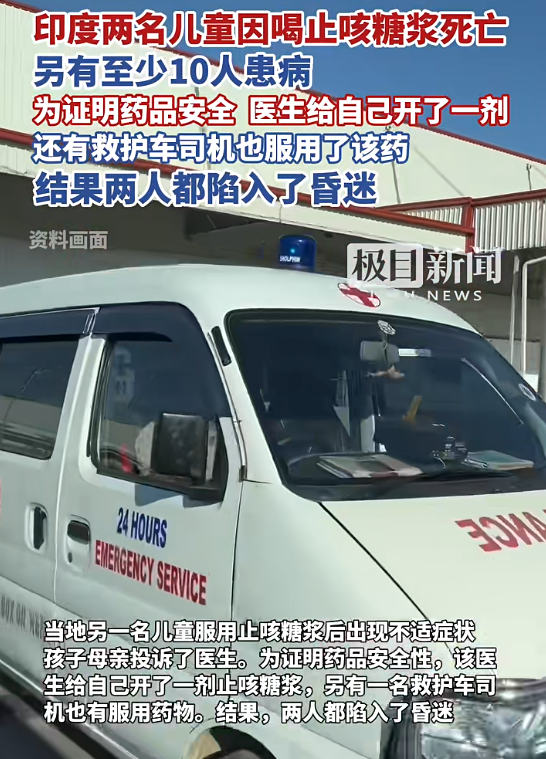 事故中,一名5岁男孩尼蒂什因感冒被社区卫生中心开具该止咳糖浆,服药次日凌晨出现打嗝症状,母亲喂水后其入睡,最终不幸离世。